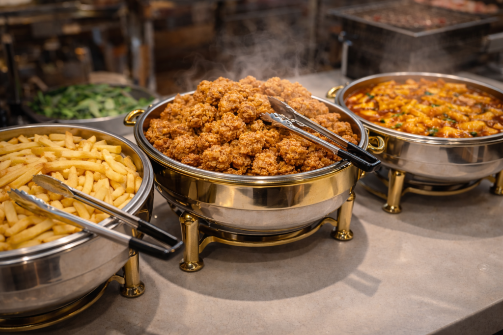 👉 Visit Mom’s Touch in Daehakro for a quick Korean-style chicken burger before your BBQ experience
